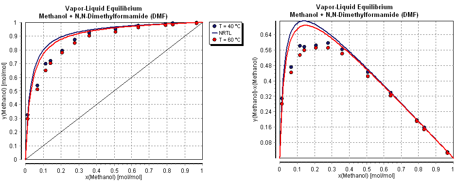 The data generally agree well with the results of common estimation methods except for the case of methanol – DMF, where no literature data are available for the k-factor of DMF in this temperature range.